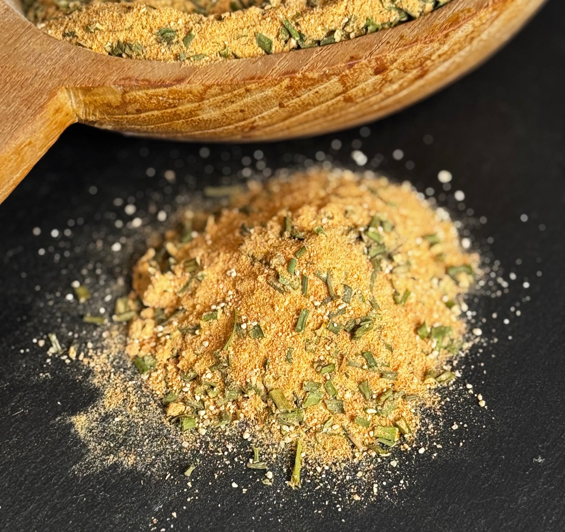 Zutaten: Kartoffelstärke, Zwiebeln, Meersalz, Tomatenpulver, Knoblauch, Kurkuma, Schnittlauch, Rauchsalz, weißer Pfeffer, Paprika edelsüß