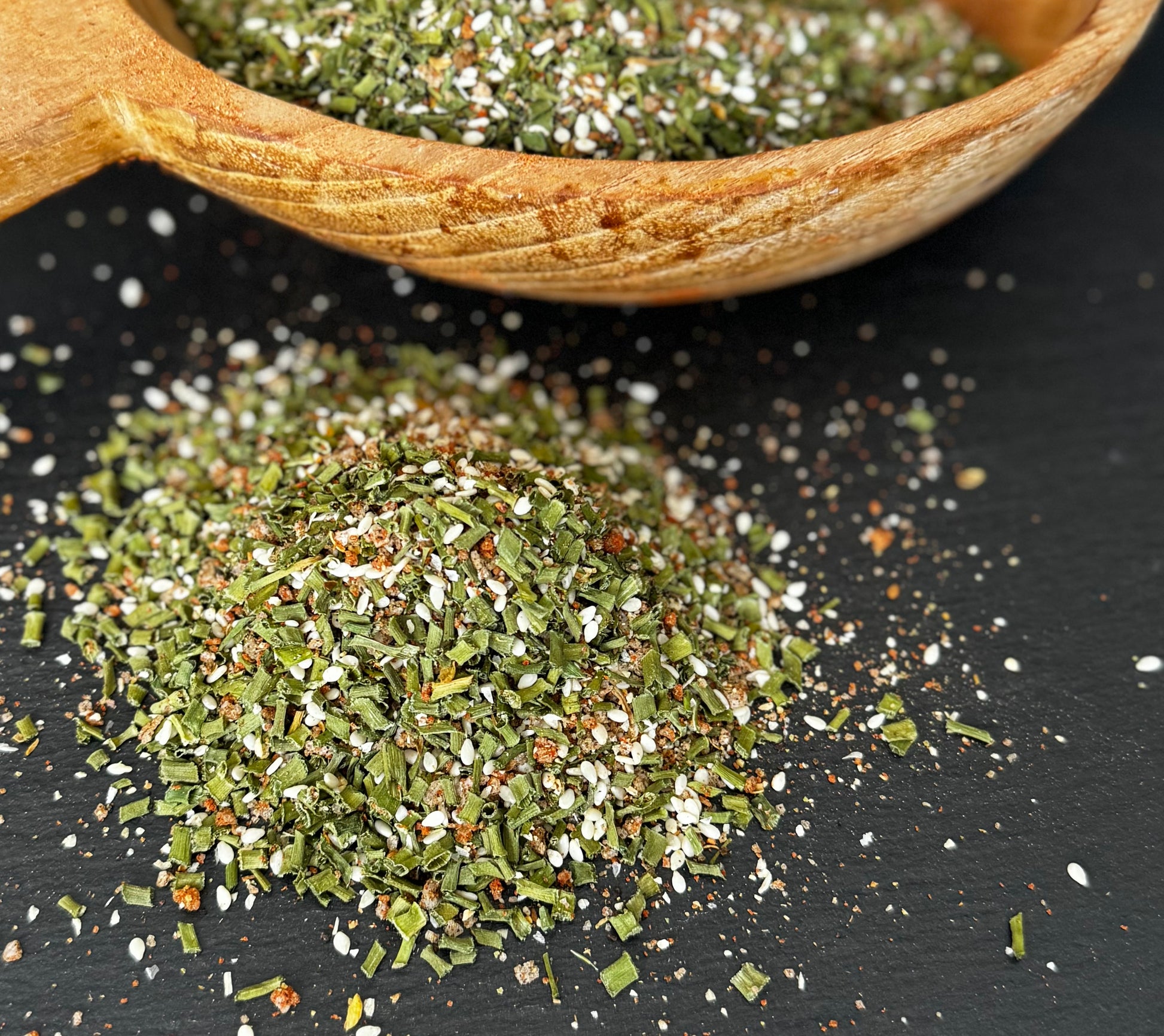 Du liebst Spargel und Gemüse? Dann gib ihm das Topping, das er verdient! Diese fein abgestimmte Gewürzmischung mit Fleur de Sel, weißem Sesam, Schnittlauch, Szechuanpfeffer, Muskat, Lorbeer, Knoblauch, Zwiebel und einem Hauch Tomatenpulver bringt Eleganz, Würze und einen Hauch Raffinesse auf Deinen Teller.